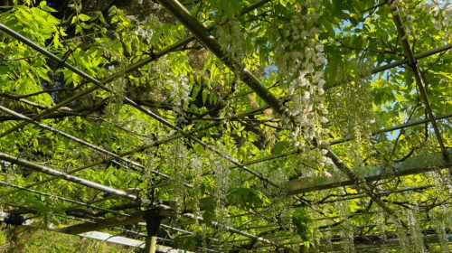 こちらは白い藤!藤は紫のイメージでしたが白も上品で綺麗です。