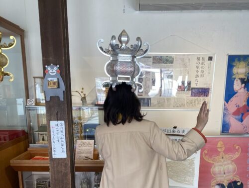 こちらの別館では山鹿灯籠を被って写真を撮ることもできます。