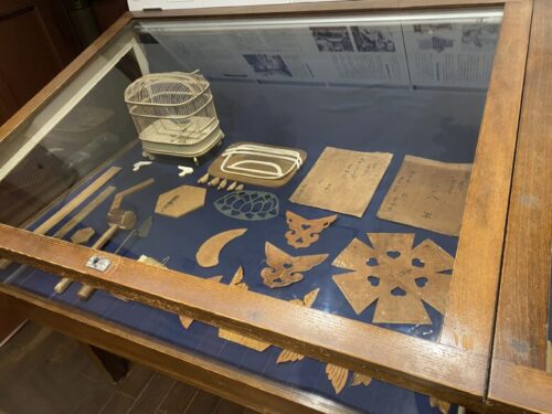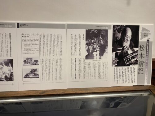 山鹿灯籠の制作製技術を集大成、広く公開した松本精記(1880~1973)の紹介と、当時実際に使われていた山鹿灯籠制作に関する資料が展示されています。