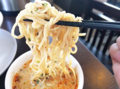 食べた瞬間辛さが迫ってくるわけではなく、後からジワっと辛いスープ。