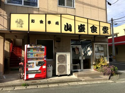 中央区大江一丁目の子飼橋通りから少し外れたところにあります、表からはちょっと発見しずらいかもですが、建物をみても老舗感漂う王道食堂、その名も「山盛食堂」です!