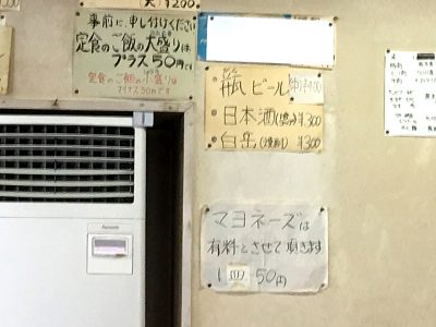 こういう昭和食堂でおかずをツマミに、昼間から瓶ビールや日本酒でチビチビとやりたいのは、毎日が時間に追われているおじさんの夢です。