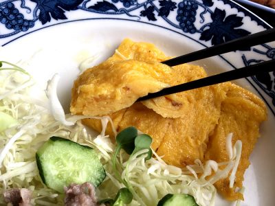柔らかくてふわふわで、少し甘め。別に醤油などで味をつける必要は全くない、このさりげなに絶品な卵焼きが最高です!