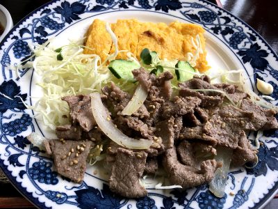 シンプルながらしっかり熱を通して焼かれたであろう焼肉にはゴマも多めに。
