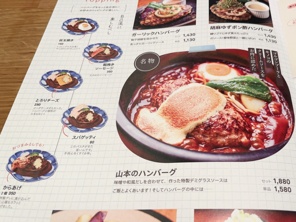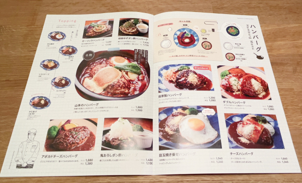 早速メニューを見てましょう。メニューにはハンバーグがずらり。色んな種類があります。