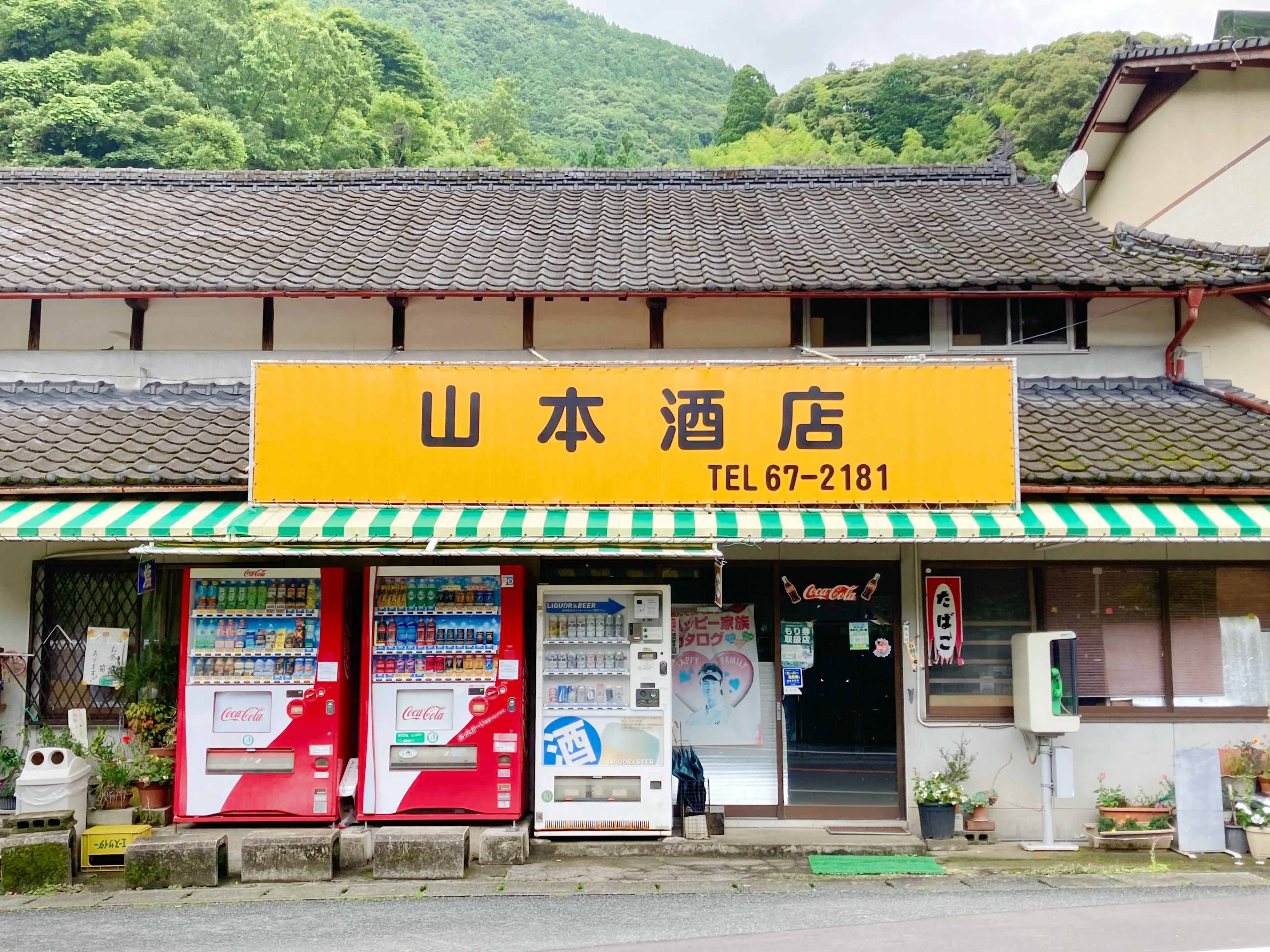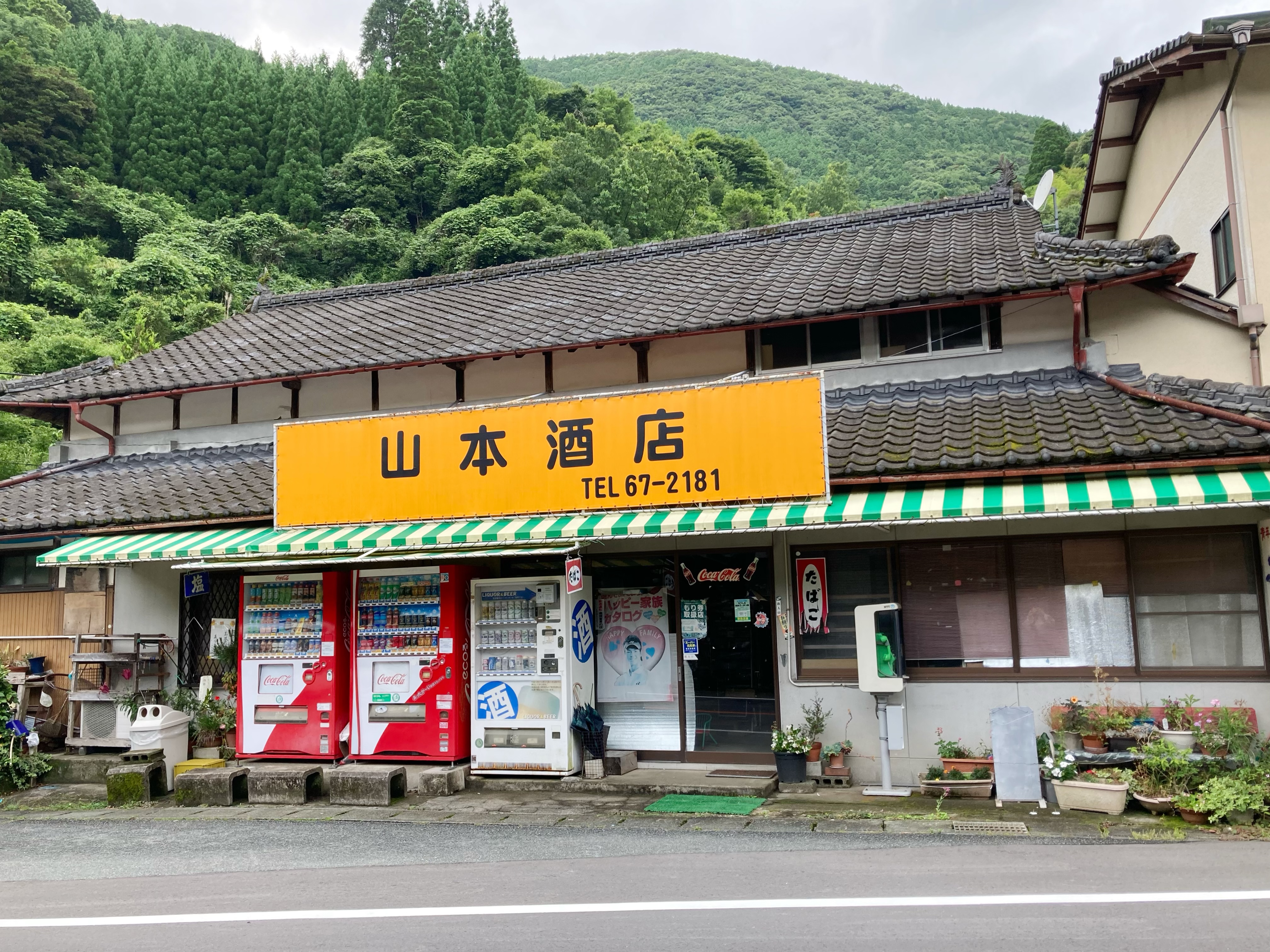 やって来たのは八代市泉町下岳。国道443号沿いに「山本酒店」があります。