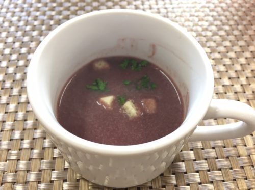 スープは秋を感じさせてくれる、濃厚な紫いものスープ。