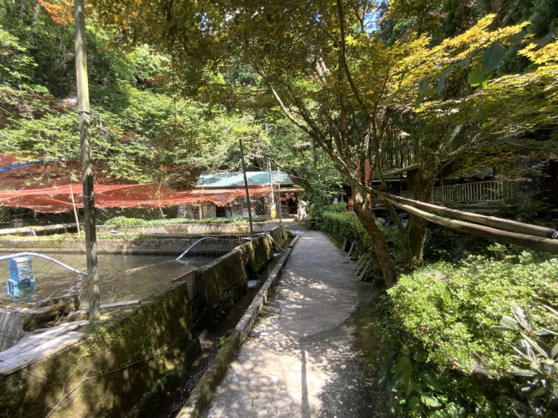 中に進んでいくと、ヤマメを養殖している池がずらりと並んでいます。