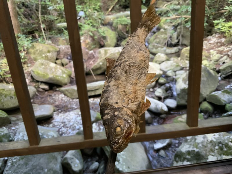 炭火でじっくり焼いたヤマメの塩焼きは、身がふっくらしていて絶品でした。きれいな水で育っているのでくさみもなくて食べやすいんです。
