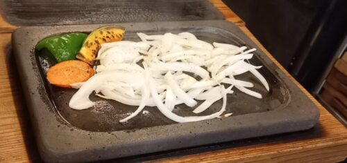 300度に熱せられた石板でじゅうじゅう焼けている匂いと音だけでお腹が空いてくる~!