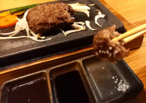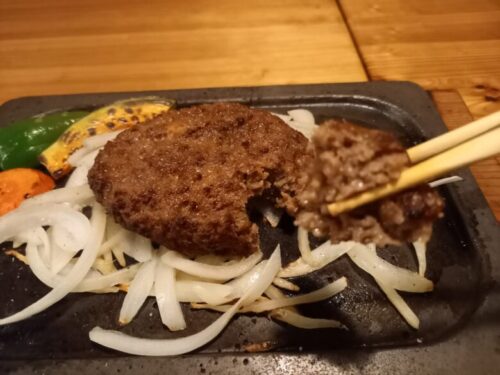 注文してから焼かれるハンバーグと野菜。