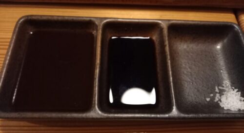 調味料はソース・水前寺醤油・天草通詞島の塩の3種。