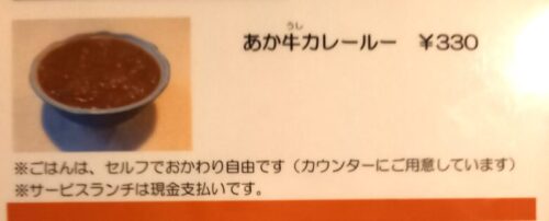 ボリュームたっぷりなランチですが、「もうちょっと食べたいな」という方にはあか牛カレーもオススメ!