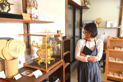 「山鹿灯籠」の伝統ある工芸や技能を知って欲しい。灯籠師と新商品の製作を続ける、店主の冨田 京さん。