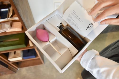 およそ8畳の空間で、約2カ月も香りが楽しめるとのこと。自分用はもちろん、プレゼント用に買う男性も多いそうです。贈られたら凄く嬉しい。詰め替え用もあり、ウェブショップでも購入できますよ。