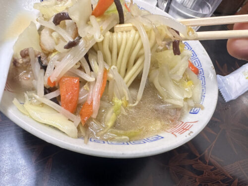 スープに野菜の甘味や魚介の味がしみていて、麺と絡んであっという間に食べてしまいました。