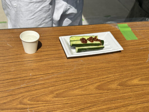 キュウリ1本を縦に4等分してある「もろきゅう」を早食いします。