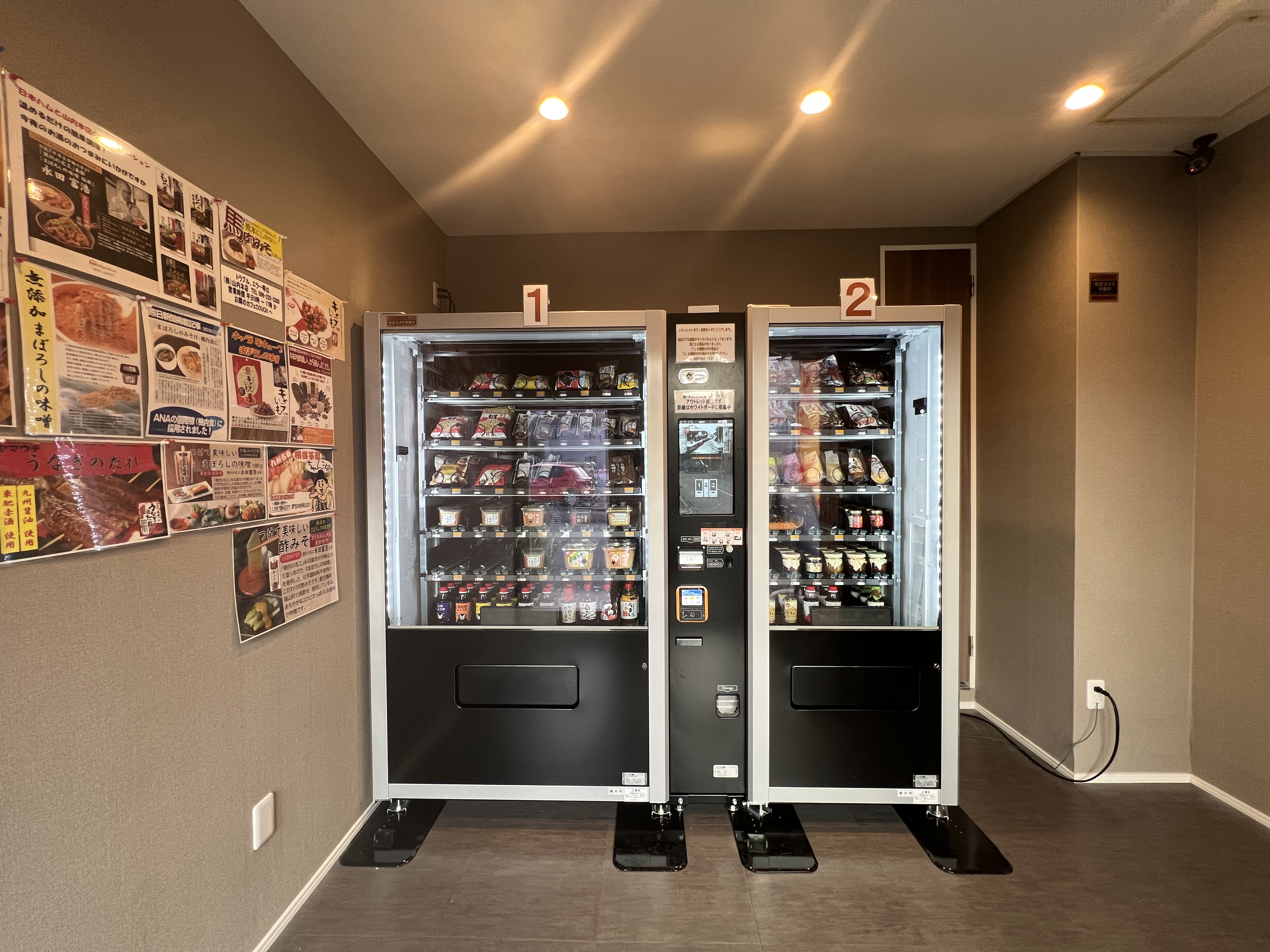 24時間好きな時間に非接触で商品を購入できることもあって、県内でも右肩上がりに増えてきている自動販売機。設置してある室内は、明るく清潔感があり天気の心配がいらないのでゆっくり商品を選ぶことができます。