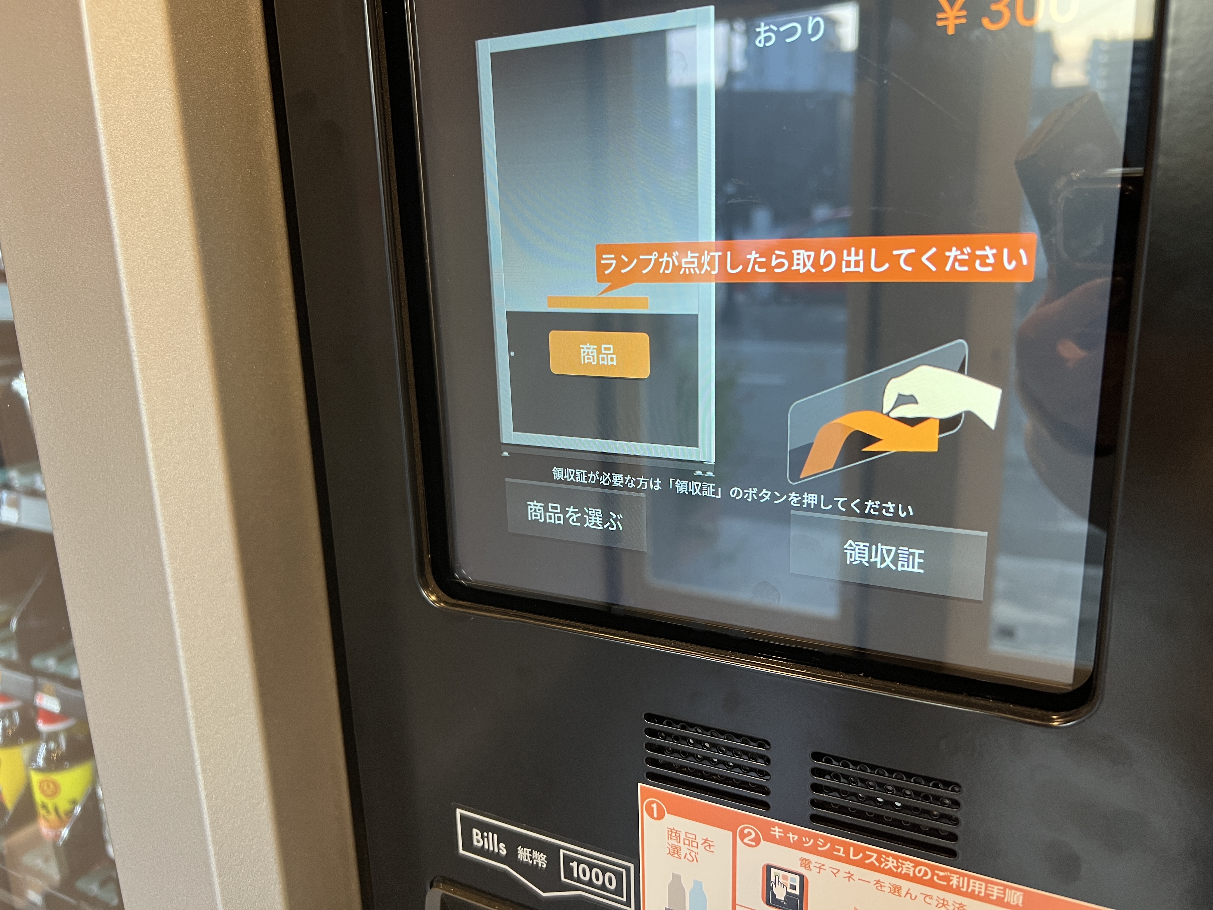 すると機械が動き出し商品を迎えに行ってくれるので、領収証が必要な方は待ち時間の間に選択をしておいてくださいね。