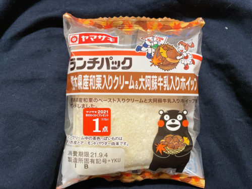 9月1日から「ランチパック 熊本県産和栗入りクリーム&大阿蘇牛乳入りホイップ」(名前長い)というフレーバーが出ています。