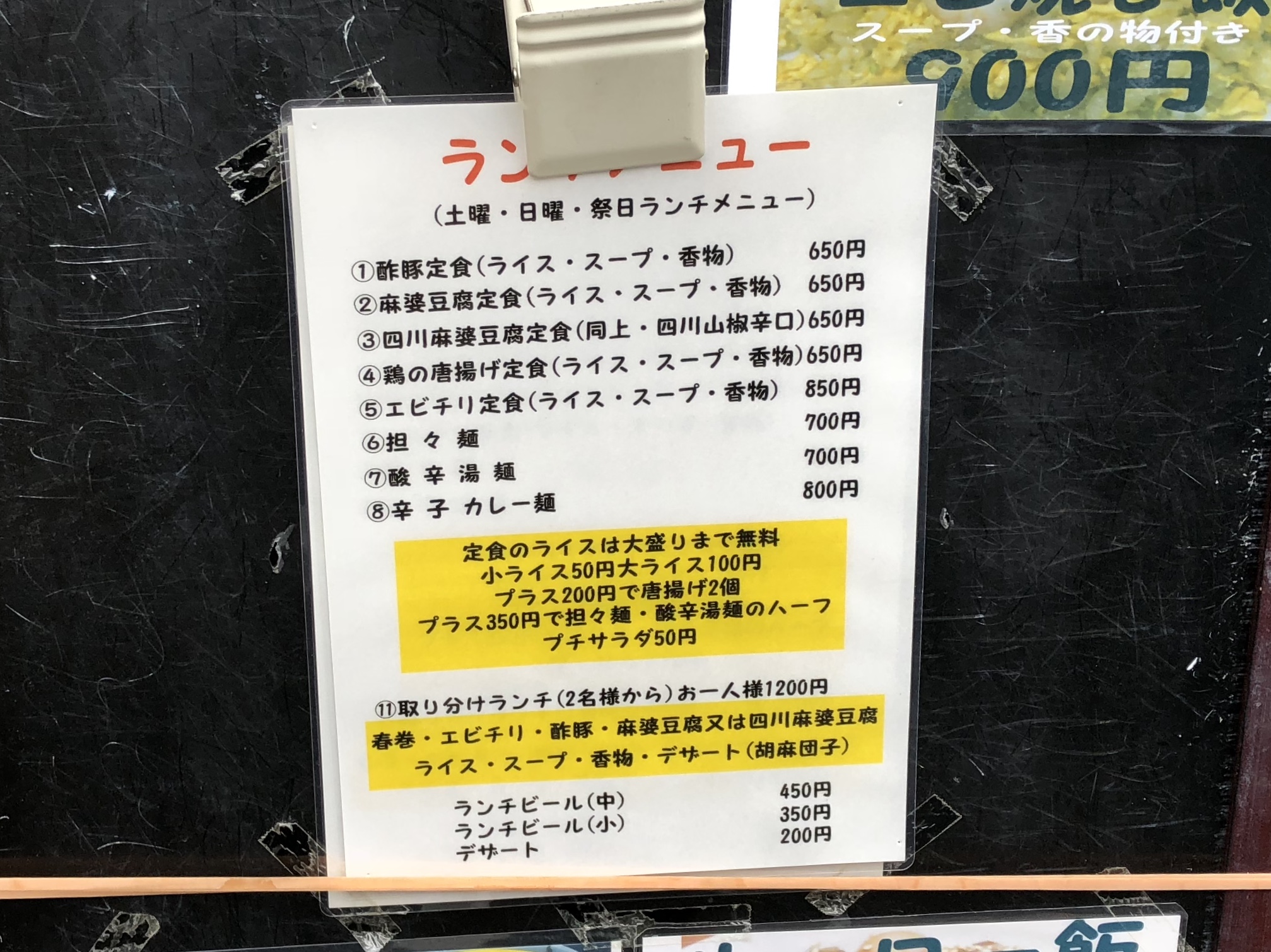 担々麺700円(税込)や麻婆豆腐定食650円(税込)が人気メニューだそうです。