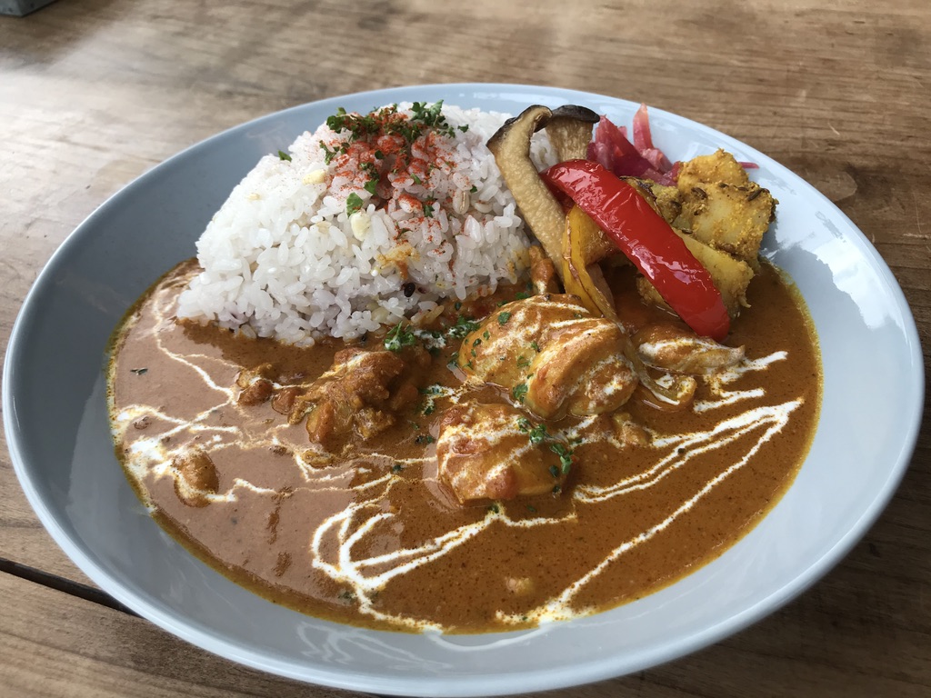 バターチキンカレーはチョイ辛のルーだが、バターと生クリームでまろやかに食せる。