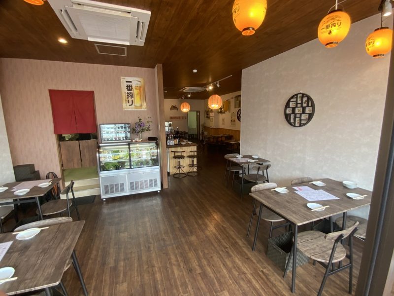 店内は広々としていて、開放的。奥にも半個室があります。