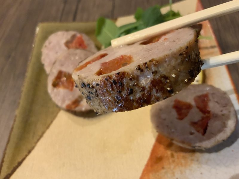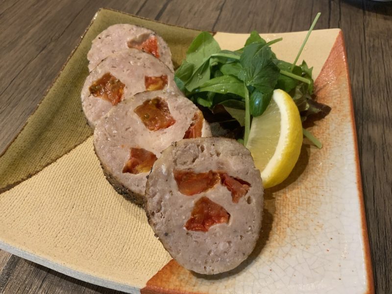 続いて運ばれてきたのは「セミドライトマトの自家製ソーセージ」。