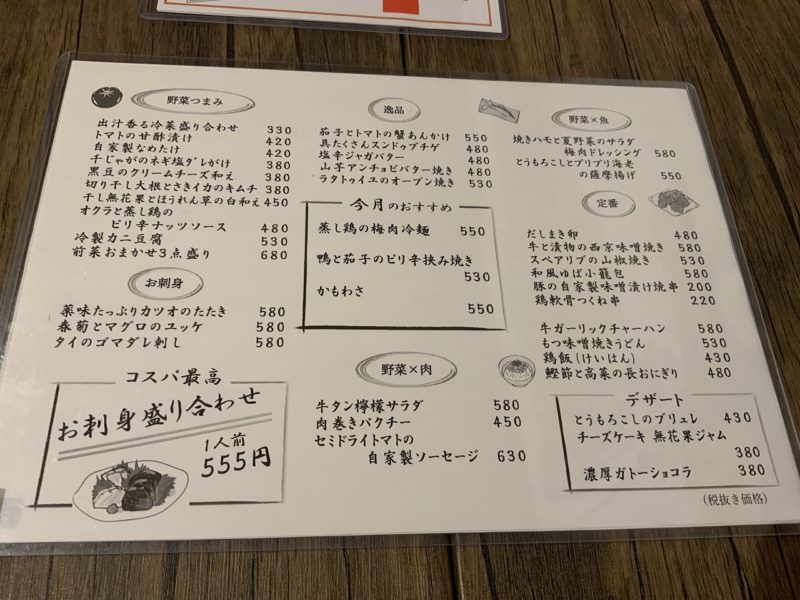健軍商店街近くに旬の野菜をふんだんに作った創作料理の居酒屋「野菜を肴に」というお店を見つけました。