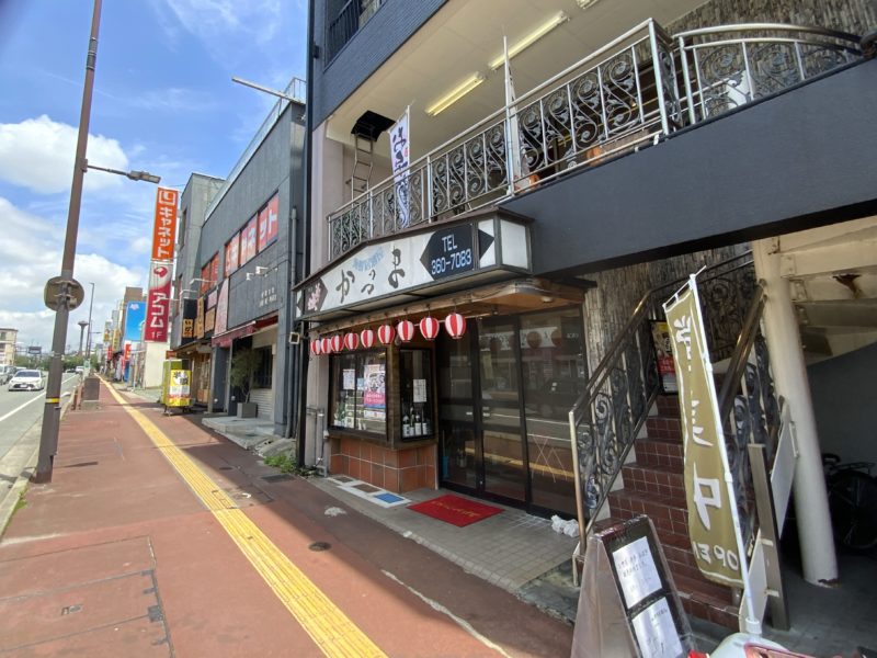 「野菜を肴に。」があるのは、健軍商店街から自衛隊方面に進んで右側。「かづま」という居酒屋の2階にあります。