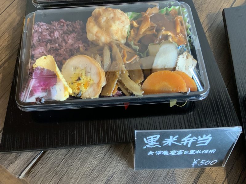 そして、最後は黒米弁当。栄養価の高い黒米弁当です。見えている部分以外にもお米がたっぷり詰まっています。