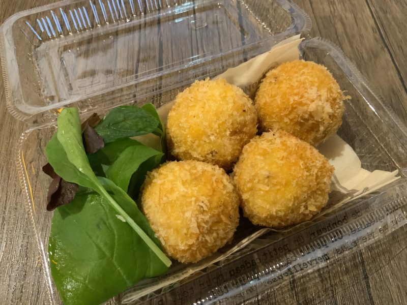 食いしん坊の私はお惣菜もいただきました。いぶりがっことクリームチーズのコロッケです。めっちゃ変な組み合わせのようですが、意外と美味しい。お酒飲みたくなる…。
