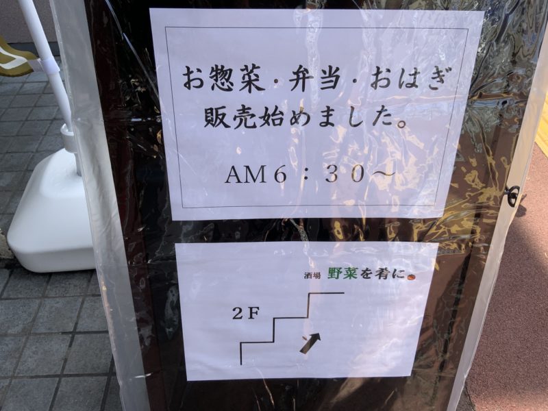 値段にボリュームに味にと驚きばかりの「野菜を肴に。」のお弁当ですが、さらにビビるのは営業時間。なんと午前6時30分から販売されています。朝ごはんや通勤中に買っていけちゃう素晴らしさ。