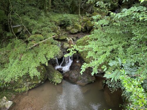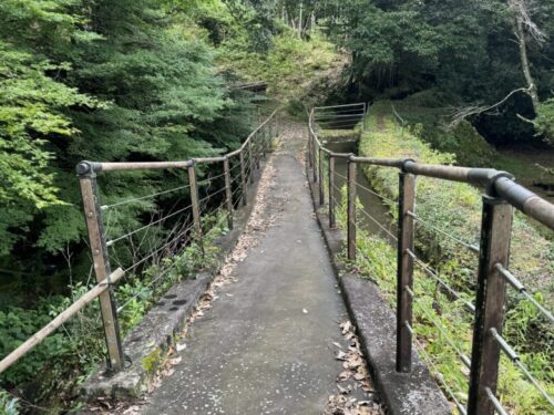 小さな橋の上から「おーい!」と手を振ってみました。橋には囲いなどありませんので、落ちないように気を付けてください。雨上がりなどは足元が大変滑りやすくなっております。
