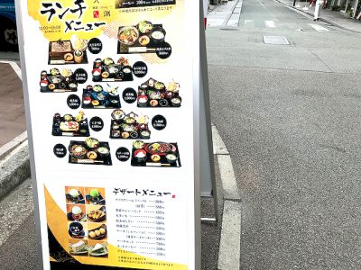 下通アーケードの2階に「幸せのパンケーキ」さんが入るビルから曲がると、ランチメニューの看板が目に入ります。