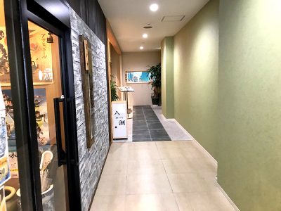 エレベーターを利用して2階へ上がり、奥に進んでいくとお店の看板が見えてきます。