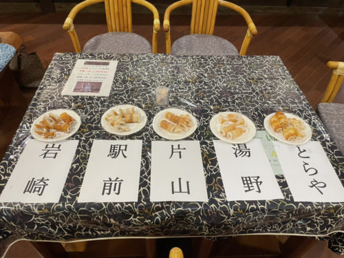 右から「とらや」「湯野」「片山」「駅前」「岩崎」。どれもおいしそうです。