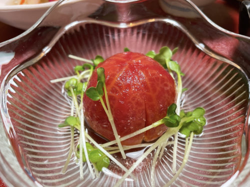今回は無理を言って一度に並べていただきましたが、本来は冷たいものは冷たく、あたたかいものはあたたかく提供されます。