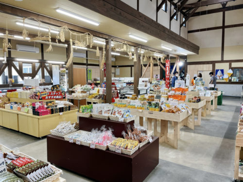 物産館「広域交流センターさかもと館」の館内には、地元の特産品やおいしいものが並んでいます。