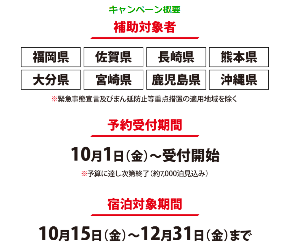 八代市独自の宿泊補助キャンペーンで、10月1日から予約受付開始、10月15日から宿泊対象期間。2021年12月31日宿泊分までが対象です。