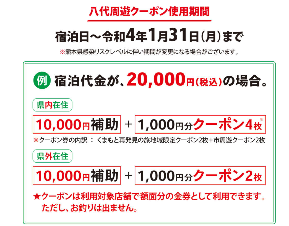 それでは最後に今回の「八代秋の行楽・宿泊補助キャンペーン」についておさらいします!