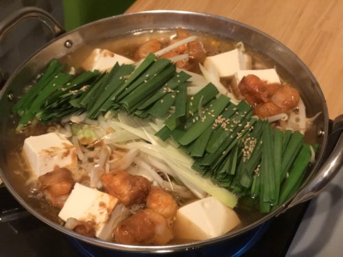 モツは内部にまで火を通さんなんけんですね、ちっとなべ底に押さえつけたがよかです。