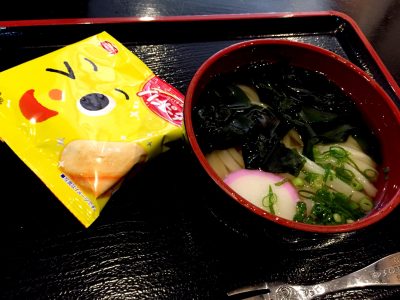 お値段は220円と、お手頃価格でお子様も本格讃岐うどんを食べる事ができます。個包装のお菓子がついてる所も嬉しい点ですね。