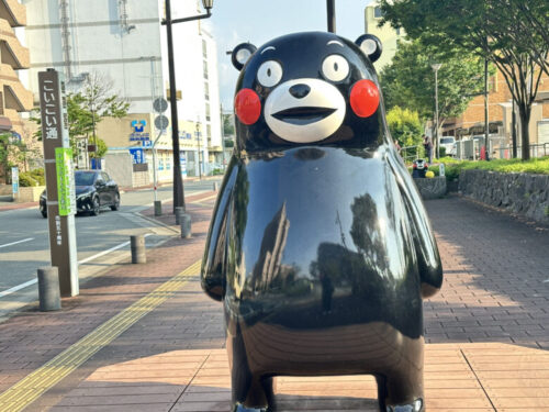 トイレは近くの緑地公園または八代市役所(22時まで使用可能)です。
