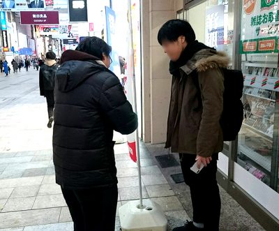 時刻は午後5時前、天気予報が最低気温0℃以下を示した熊本の繁華街、下通りはCOCOSA前にやってきました。