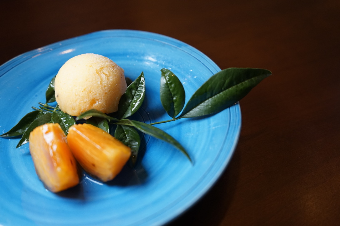 秋には、手作り柿シャーベットなど。旬を楽しめます。