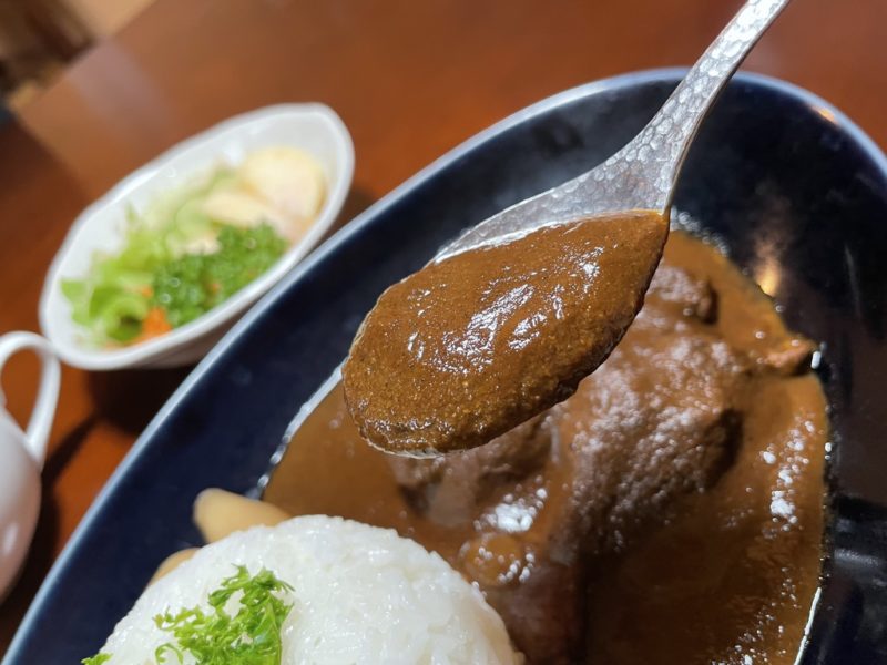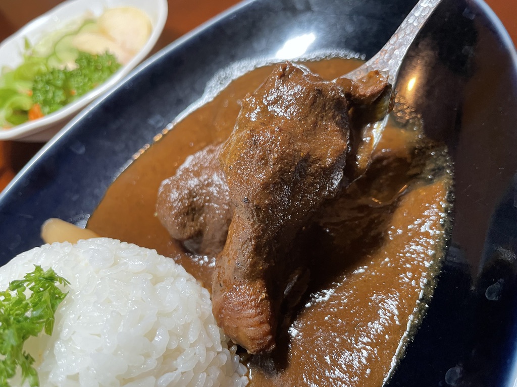 口に入れると、最初に黒カレーのような男らしいカレー風味が広がり、舌に乗せると途端にスパイスが勢力を拡大します。
