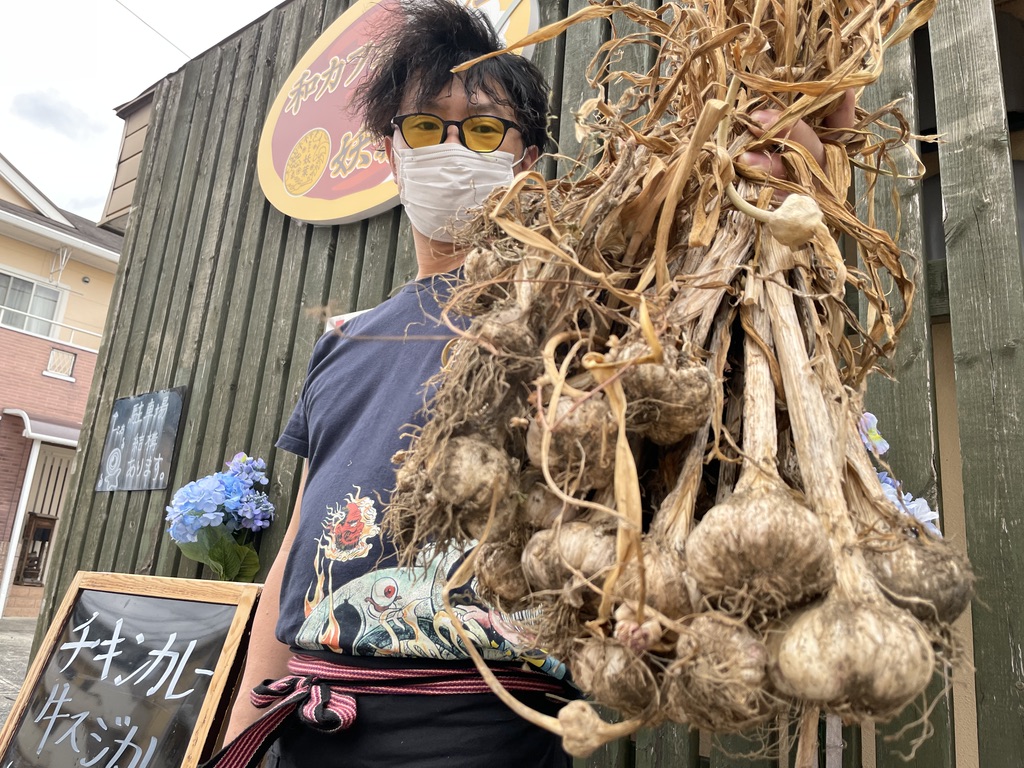 「自分の農園では、ニンニク・生姜・玉ねぎ・春菊・トマトなど作ってます。そのうち香辛料も育てて、真の自家製カレー作るのが夢ですね」