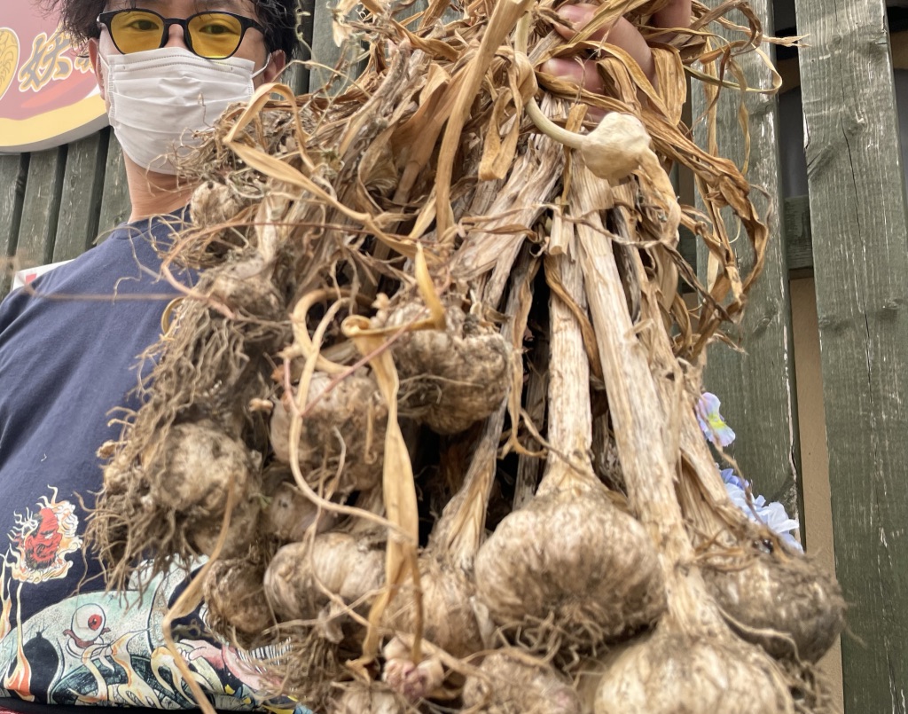 「はいそうです。あ、私の農園で作ってるニンニク取ってきたんですけど」