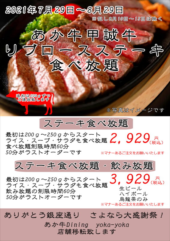 銀座通り「yoka-yoka」であか牛ステーキ食べ放題